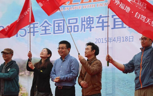 4月18日上午,在宜昌三游洞景区,随着一声响亮的擂鼓声, 2015“爱上宜昌,自由自驾”年度主题自驾游活动正式开启,来自北京、广州、陕西、武汉、襄阳、荆州、荆门等地的200余辆品牌车,浩浩荡荡,开始了两天一夜的宜昌自驾之旅。